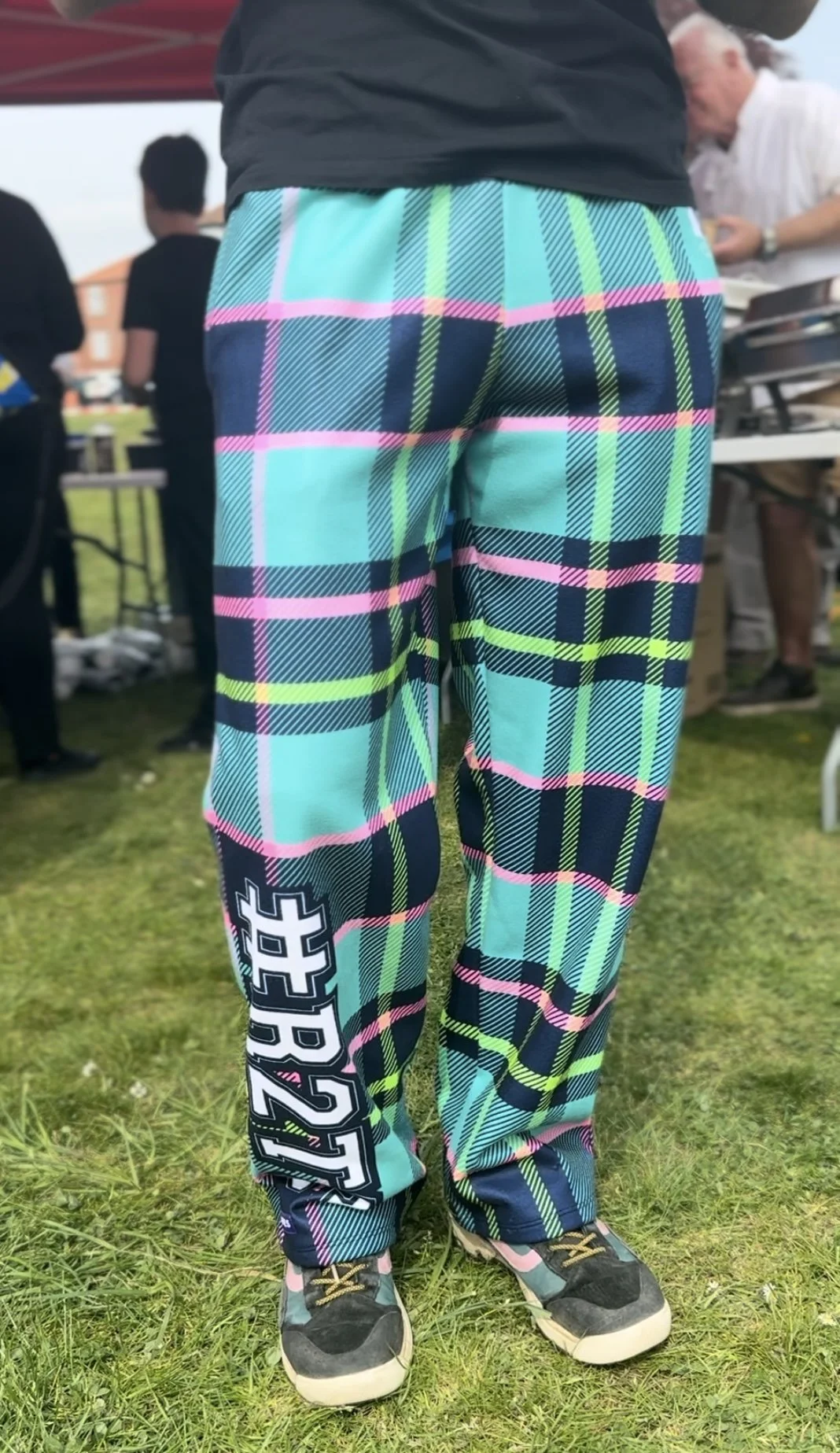 Loones are loungewear bottoms made from a lovely thick Yukon fleece, they are a comfy fit, baggy and long. Once you have a pair they will become your favourite thing to wear! They are great for travelling, rigging or lazying about. All our Loones are designed, packaged and dispatched by our small hardworking team in Nottingham. They are made by our good friends in Hamilton, Canada, with the highest spec sublimation and laser cutting equipment and hand sewn by a team of professional seamsters.